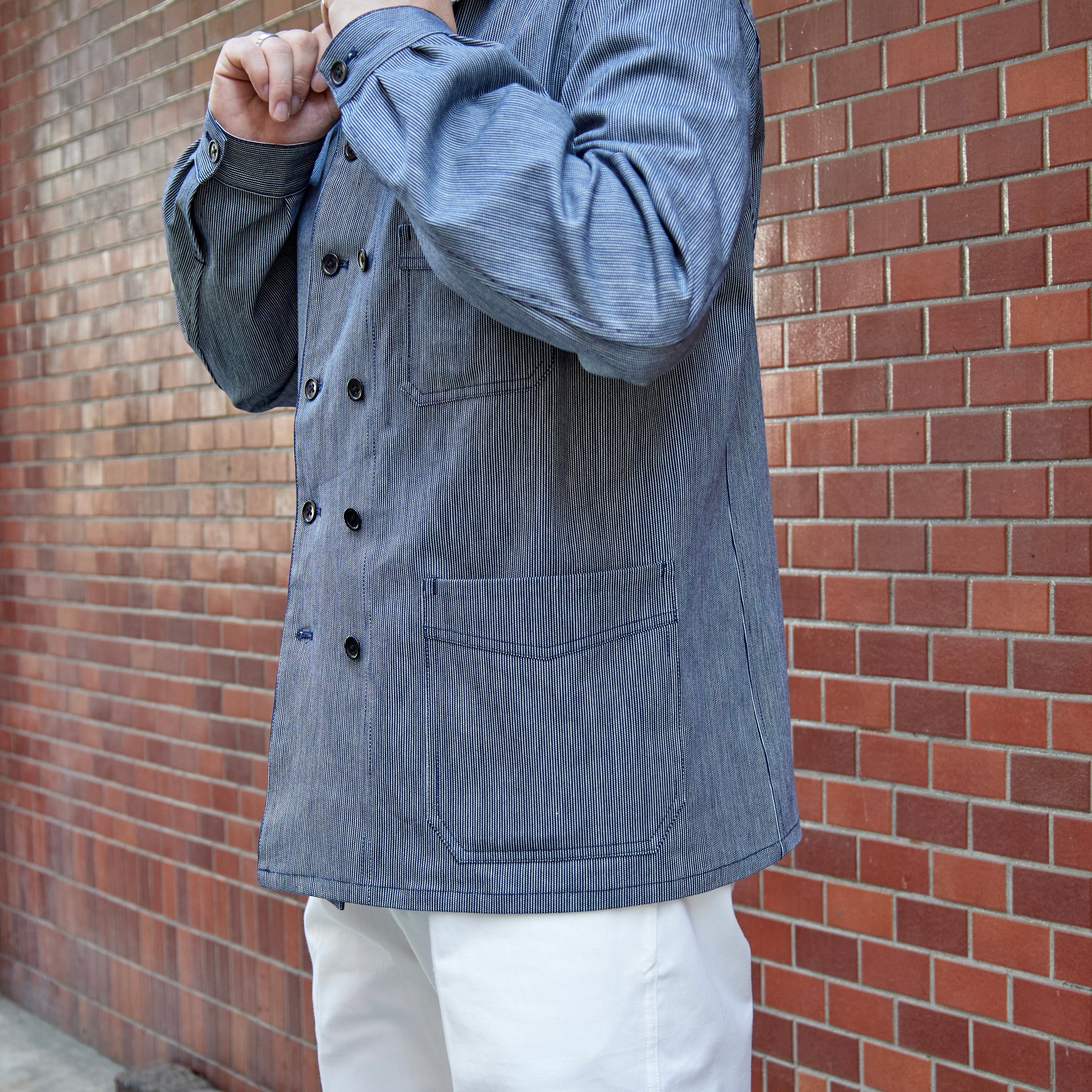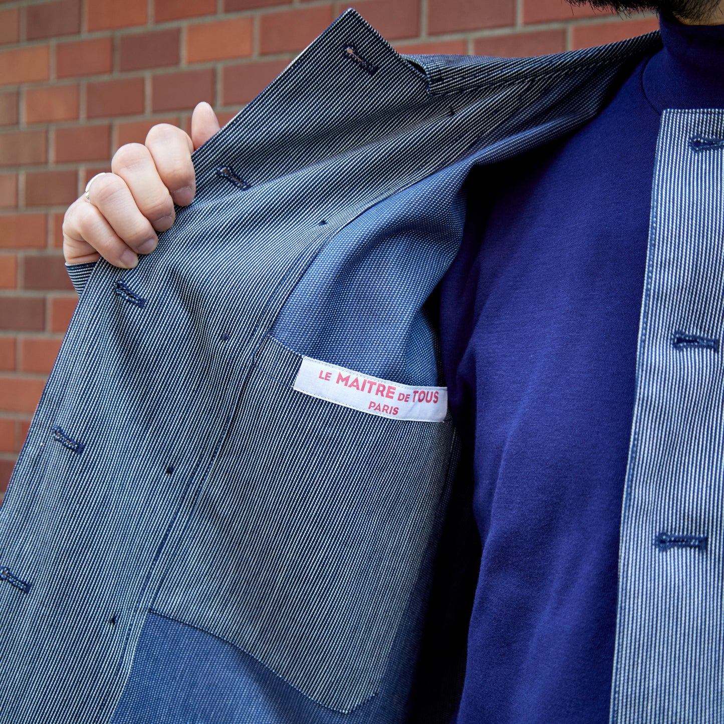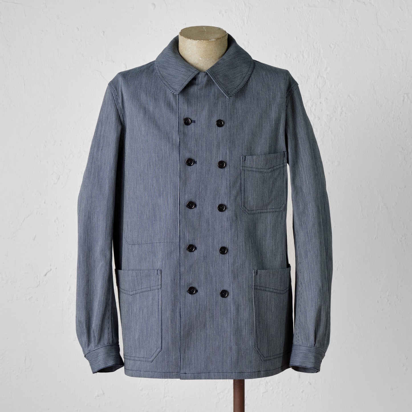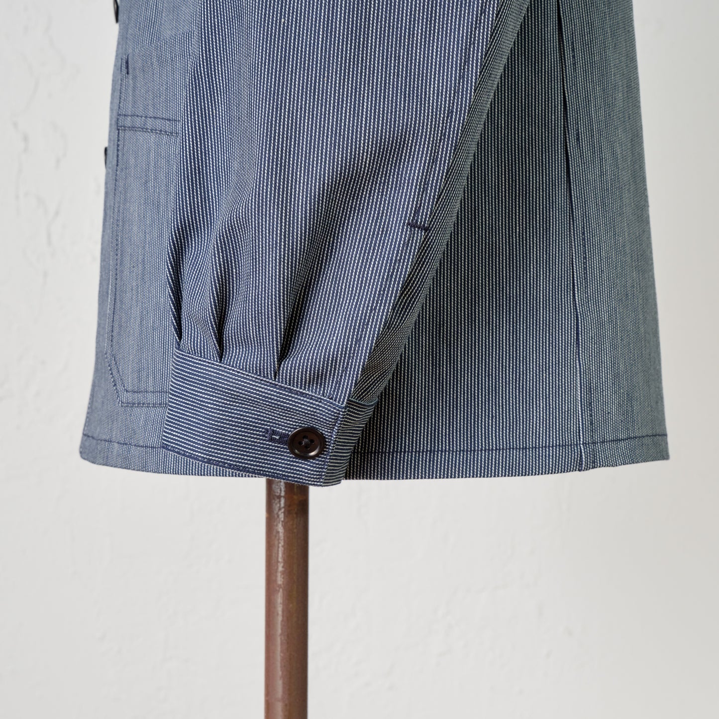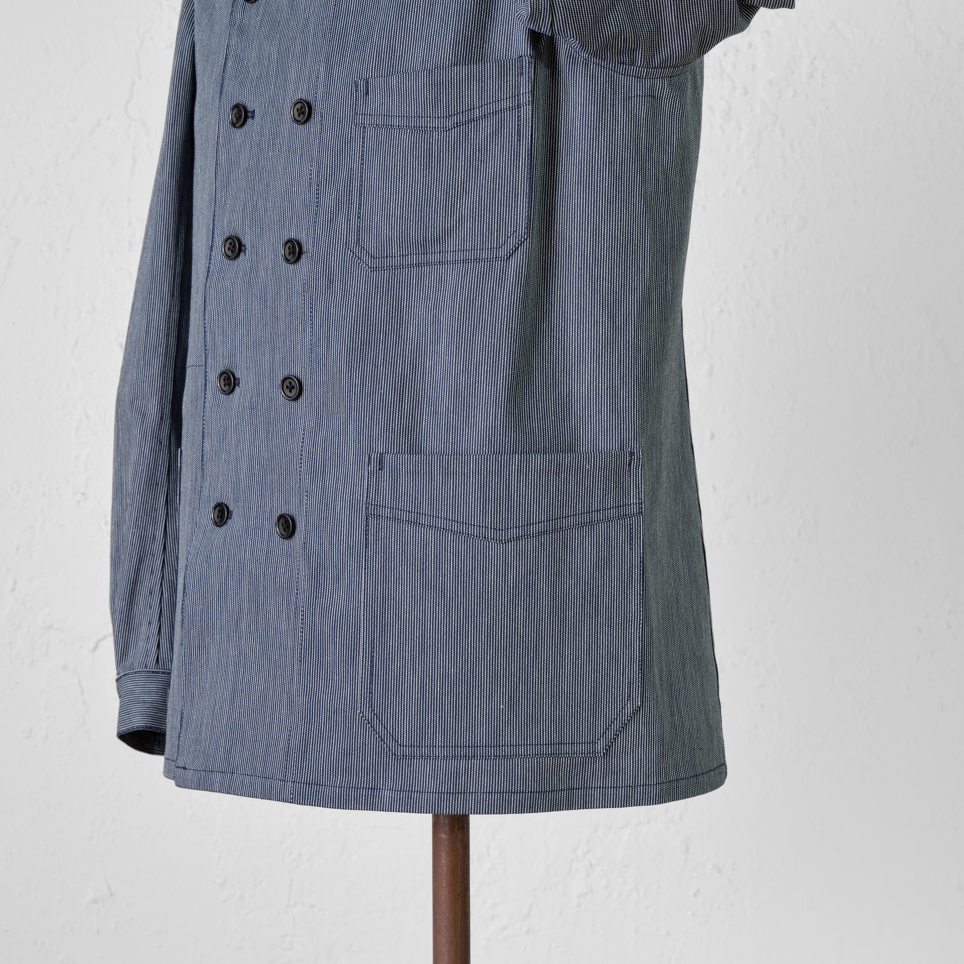 - Made of indigo-dyed striped fabric.