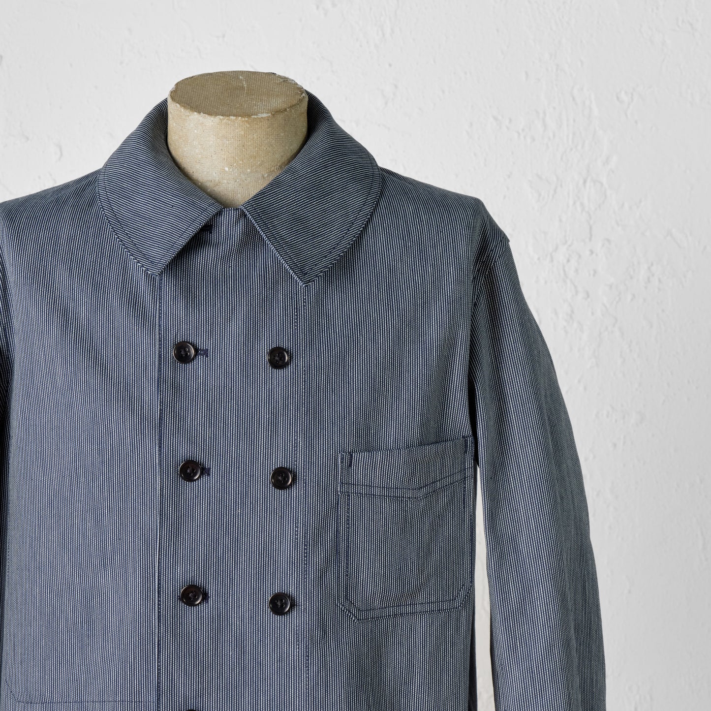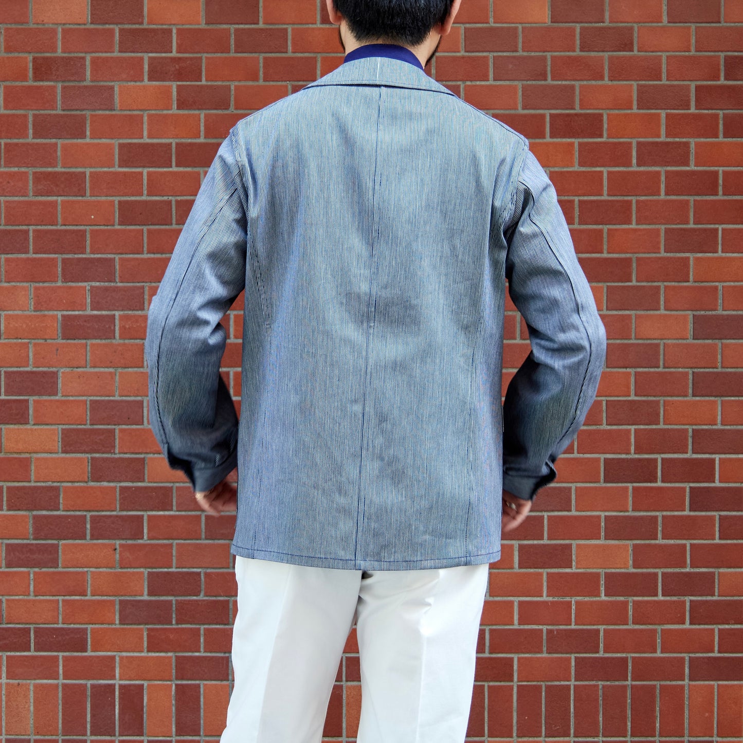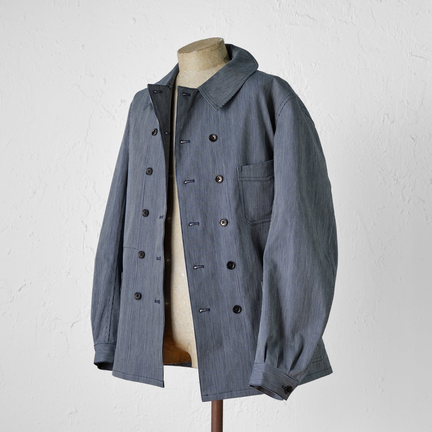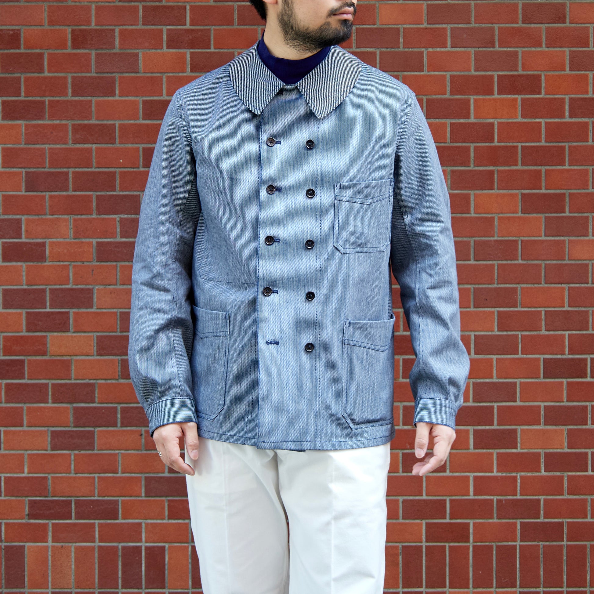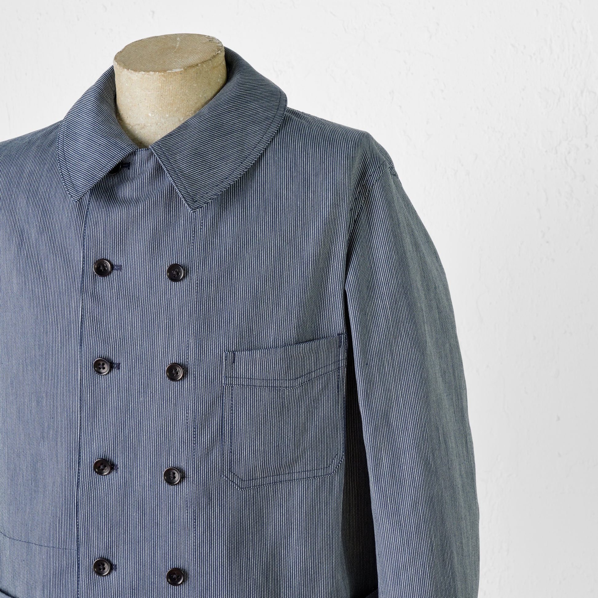 - Made of indigo-dyed striped fabric.