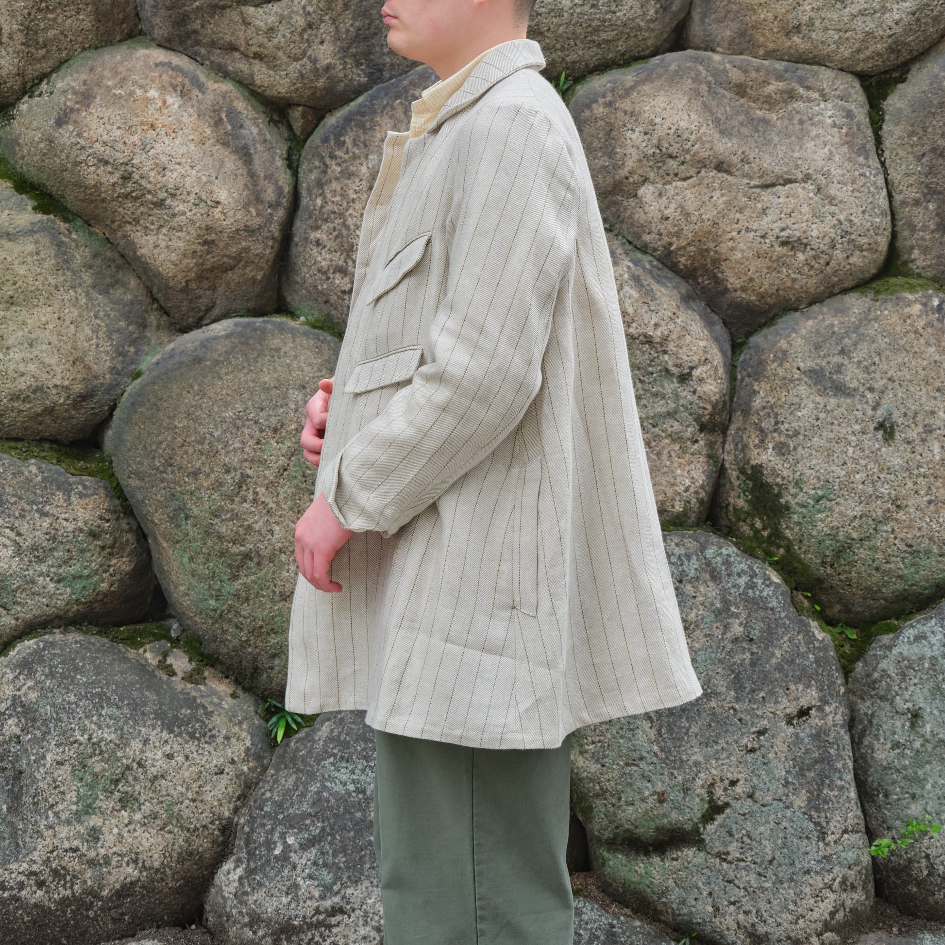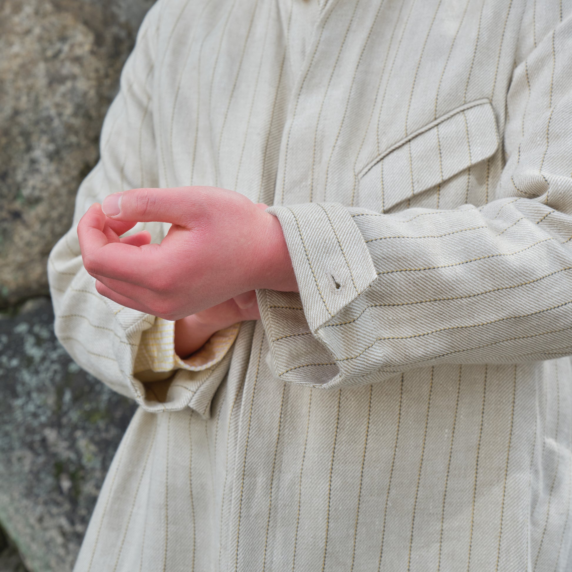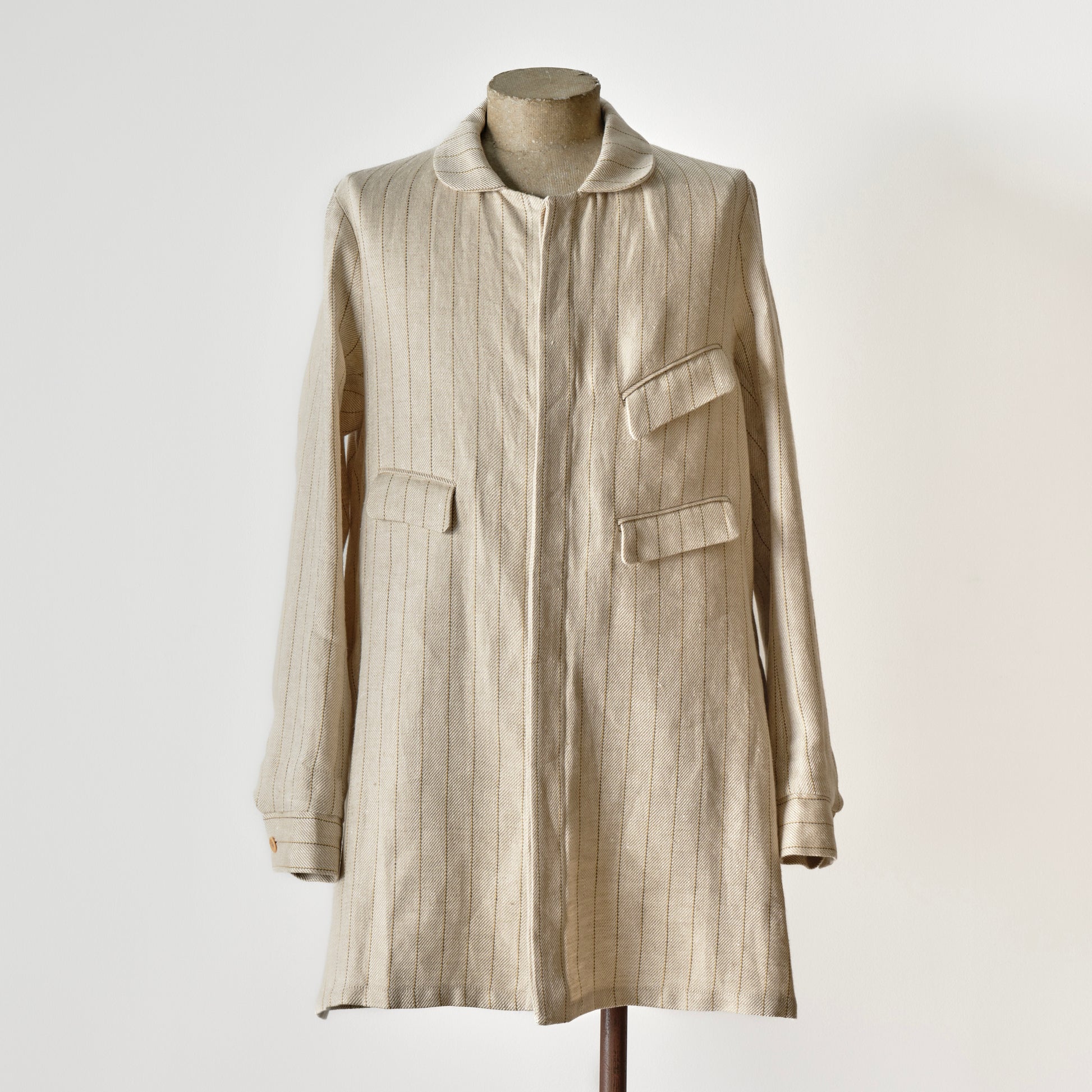 ・Confeccionado en un tejido de lino de gramaje ligeramente grueso.