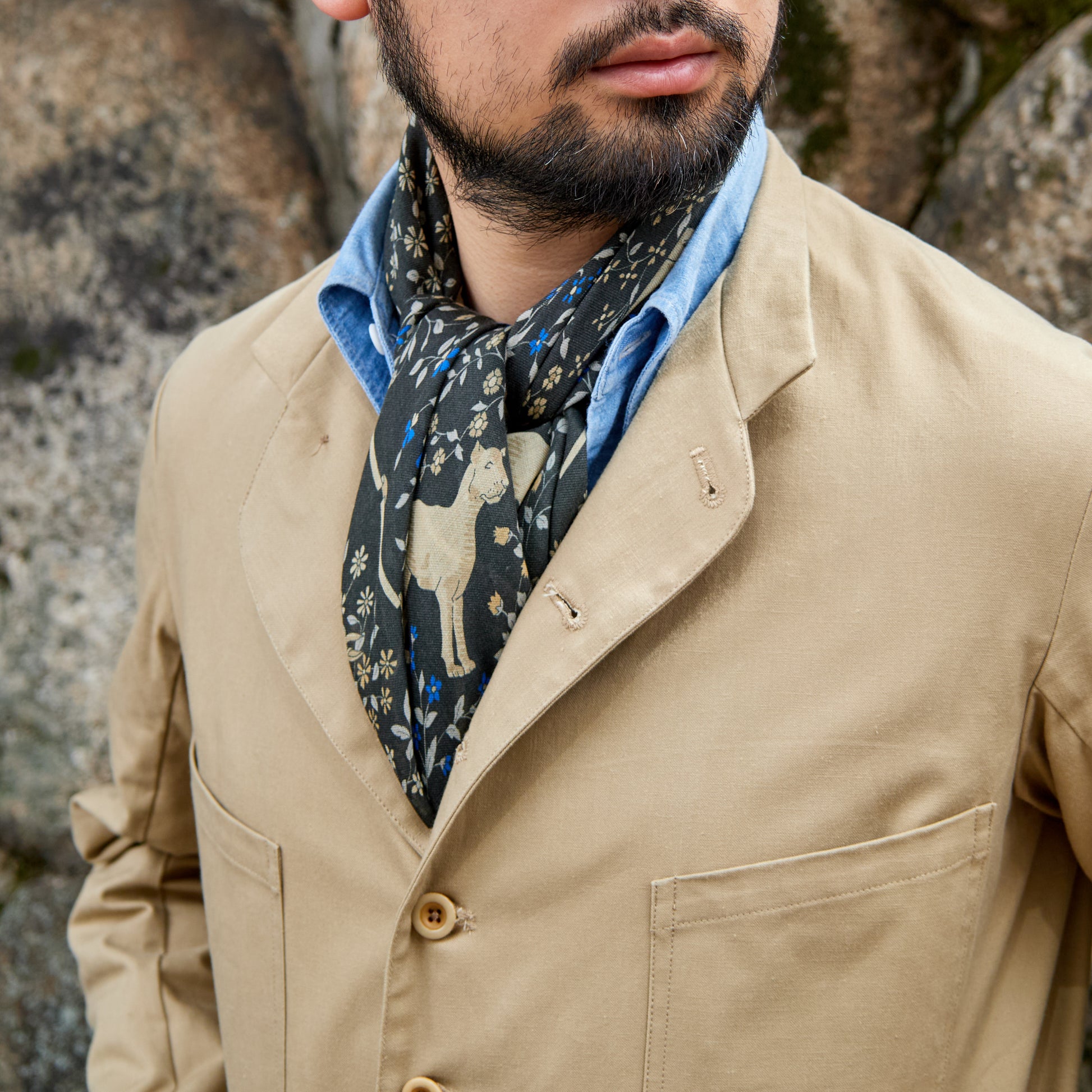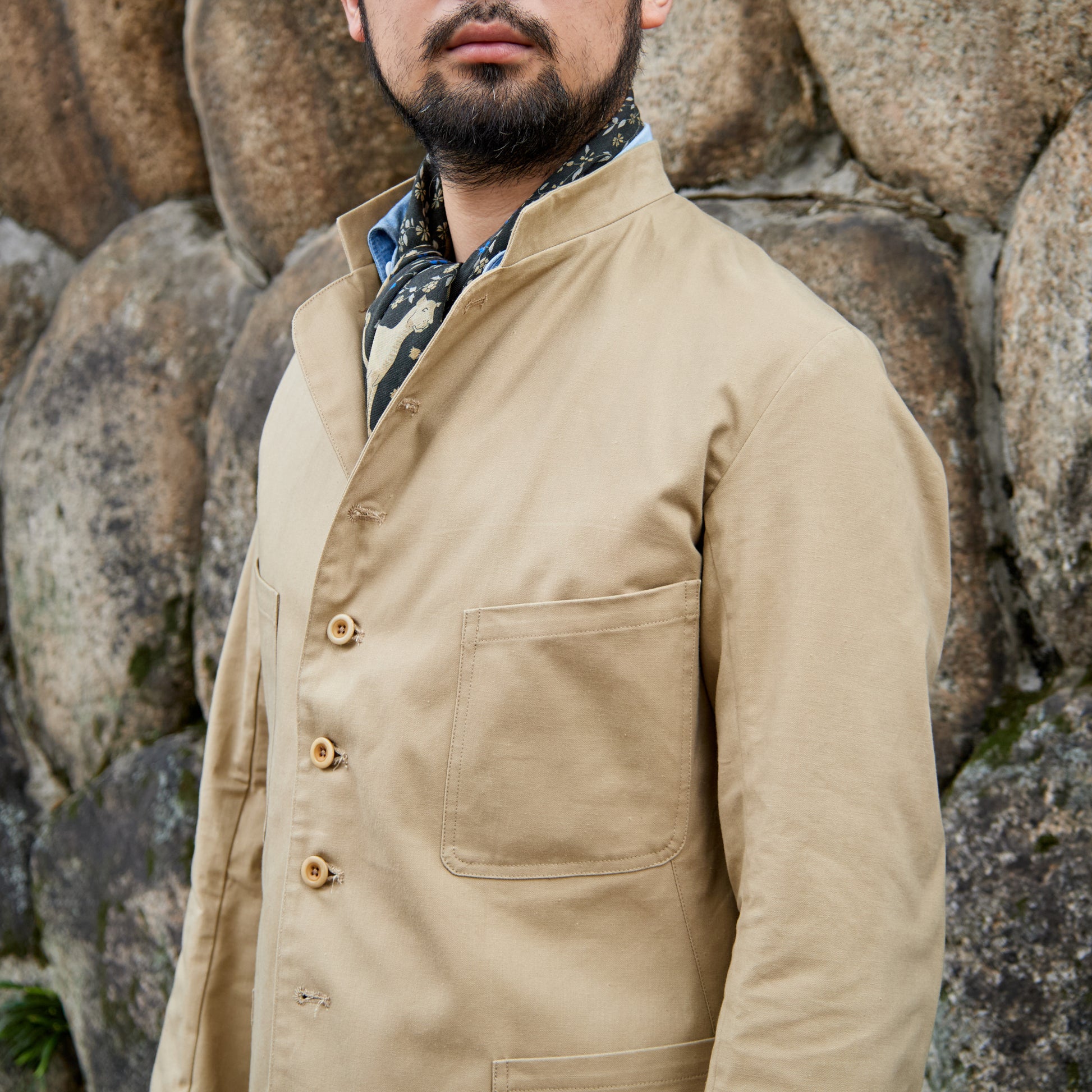 ・특징적인 스탠드 칼라는 접어 올려 라펠 재킷처럼 착용할 수도 있습니다.